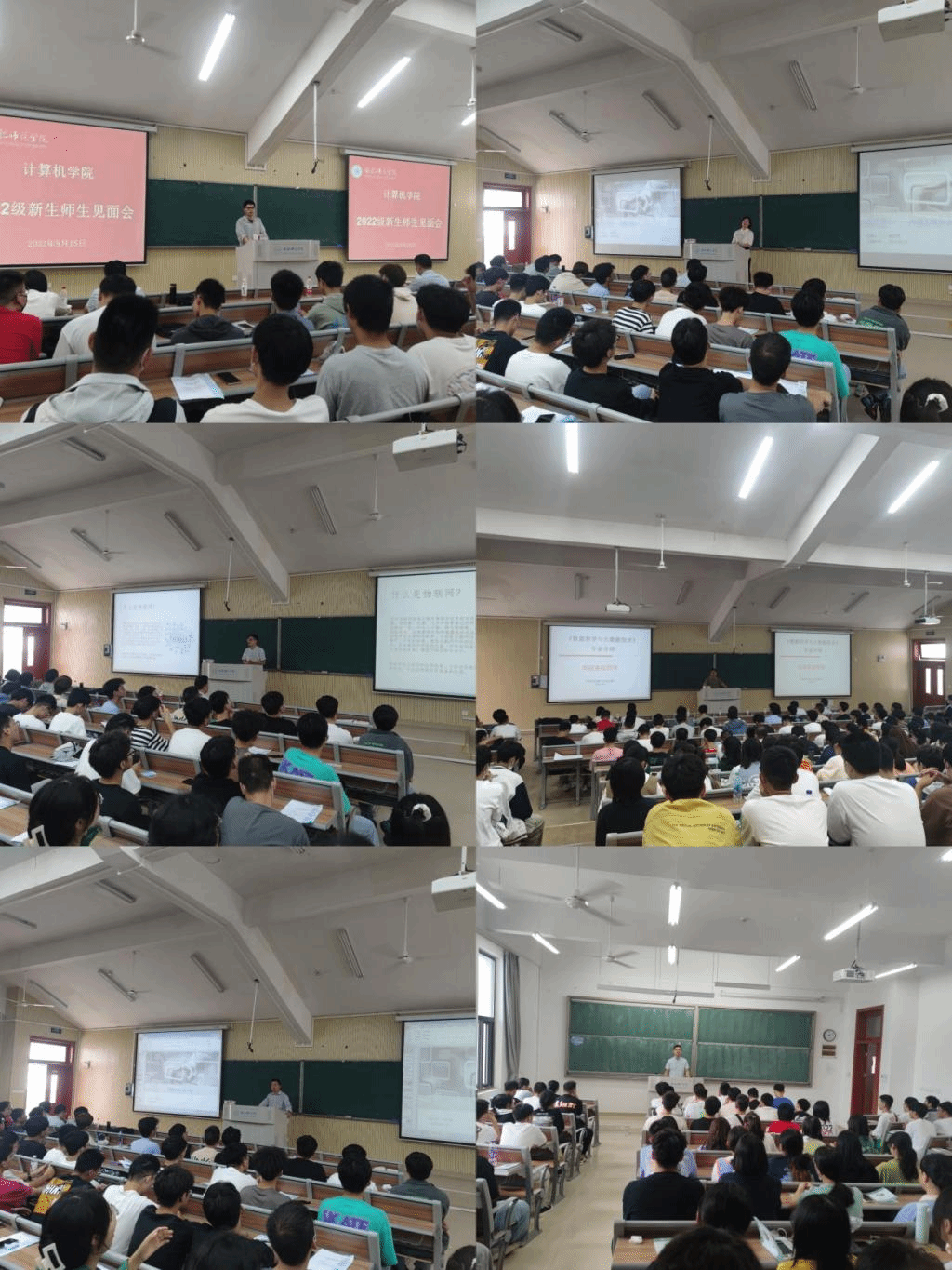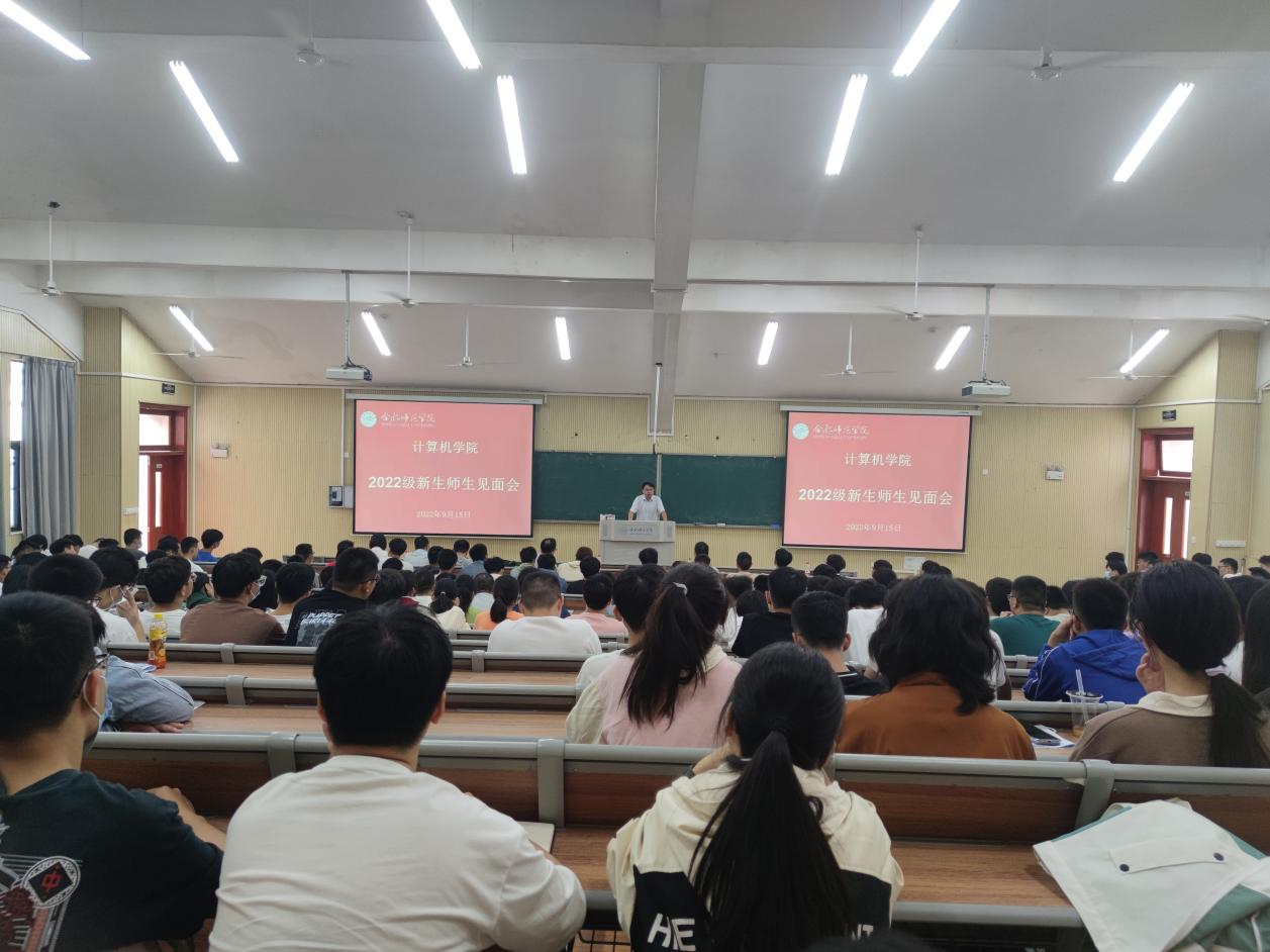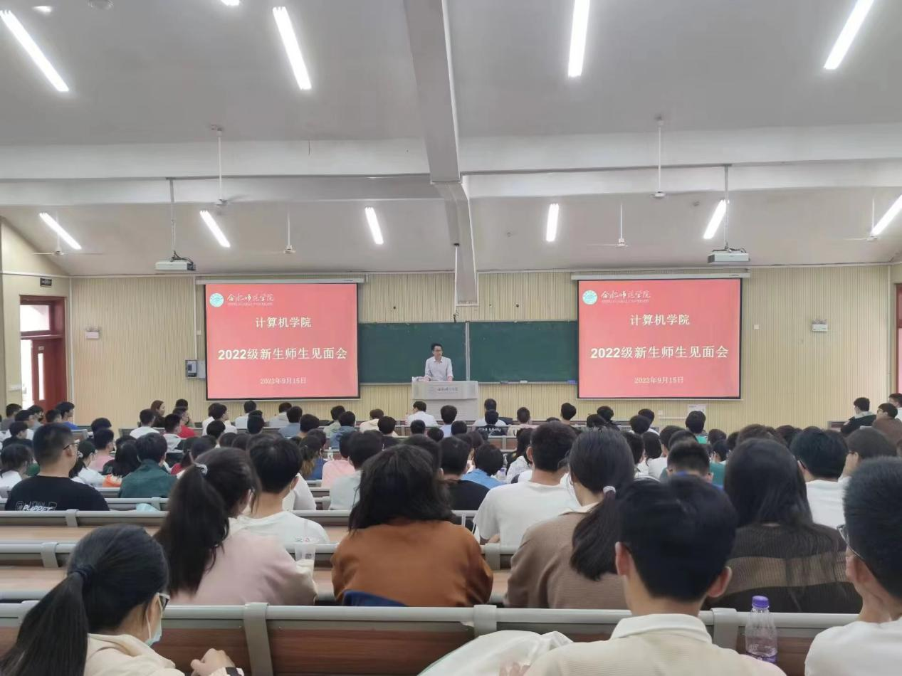 本网讯 9月15日上午,计算机学院在滨湖校区铭传楼A101举行2022级新生师生见面会,2022级计算机类新生参加,铭传楼B312设人工智能专业见面会分会场。学院党委书记王祥、院长谢飞、各系主任及教师代表、分团委书记陈阳出席会议,会议由计算机类新生辅导员夏芳主持。