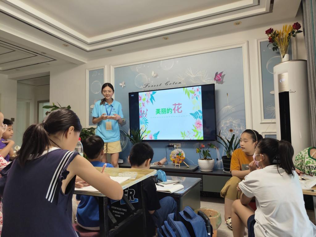本网讯  7月11日,淮南凤台行知学堂上午的第一节课,小先生付韦为17位小学员带来了科普系列课程之一《美丽的花》。