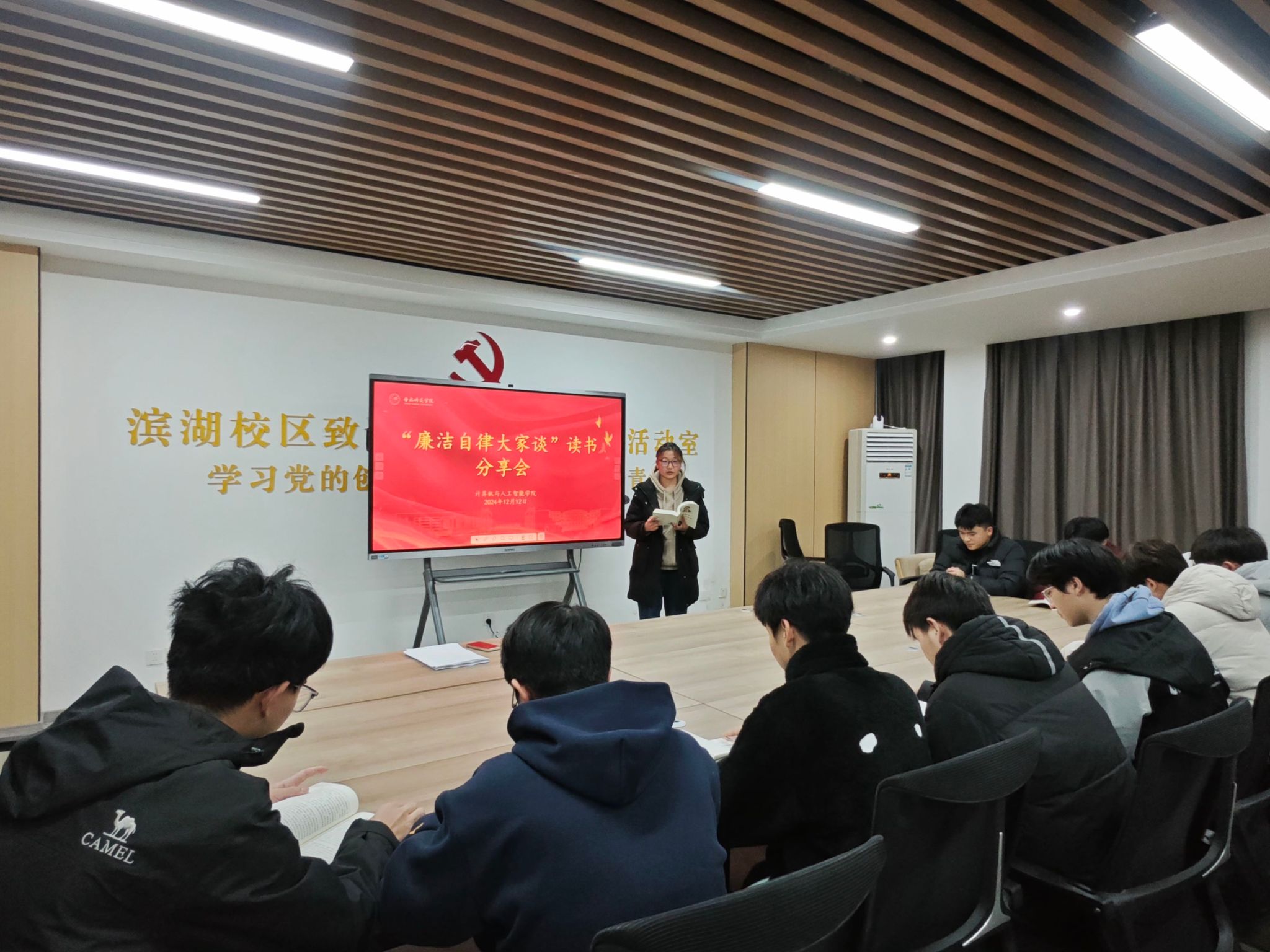 为激发师生对廉洁文化的关注,推动廉洁教育深入人心,12月12日,久久这里有精品在滨湖校区一站式学生社区举办了“廉洁自律大家谈”读书分享会活动,本次分享以廉洁文化为主题,吸引了学院的广大团员和学生代表前来。