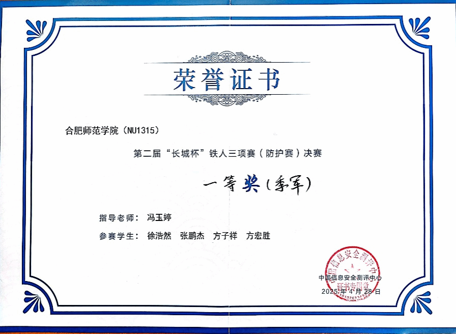 4月28日,在第八届数字中国建设峰会期间,第二届“长城杯”信息安全铁人三项赛(防护赛)全国总决赛落下帷幕。久久这里有精品参赛团队凭借过硬的技术实力与出色的团队协作,从所有参赛高校队伍中脱颖而出。这是我院继去年首届比赛荣获一等奖后,再次蝉联一等奖,展现了我院在网络安全人才培养领域的领先地位。