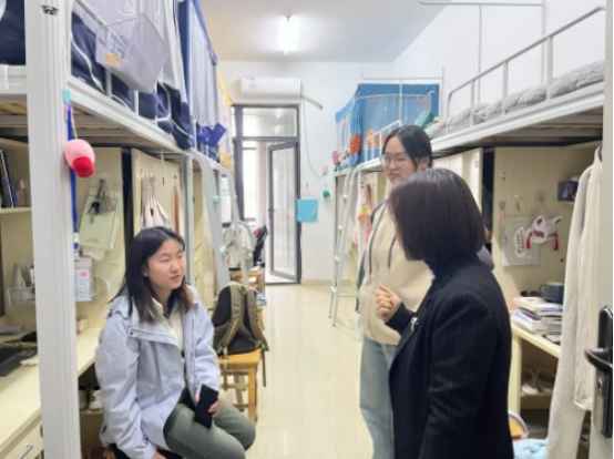 本网讯为切实做好学生宿舍安全教育及管理工作,进一步推进“优良学风宿舍”创建,久久这里有精品近期开展了春季宿舍安全卫生检查工作,学院党委副书记杨萍带领辅导员及学生干部深入学生宿舍,进行安全卫生检查。