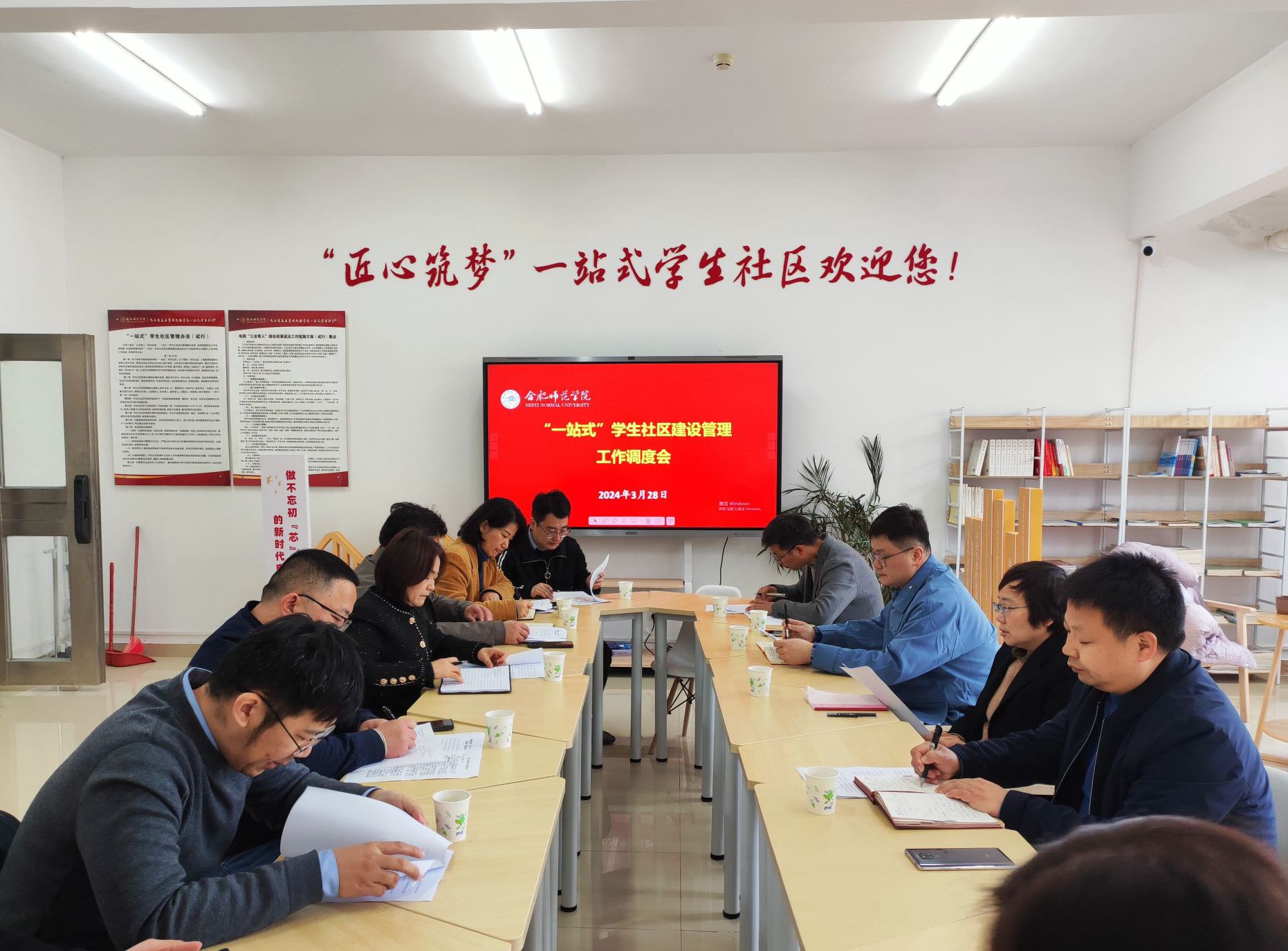 本网讯 3月28日上午,学院在滨湖校区5号学生公寓“匠心筑梦”学生社区工作室召开“一站式”学生社区建设管理工作调度会。院党委副书记梁立昌,滨湖校区综合管理办公室、学生工作部及有关二级学院负责人、辅导员参加会议。